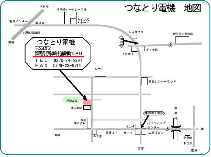 東武線伊勢崎駅より自動車で約15分。 高崎線本庄駅より自動車で約25分。